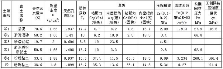 淤泥、淤泥质土加固前后的主要物理力学指标对比表如下: