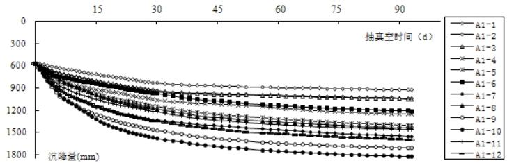 上图沉降零点为抽真空起始时间点,在插板至开始抽真空期间,软土层沉降量不可忽视,达到了总沉降量的20%~30%。