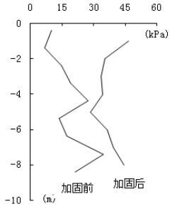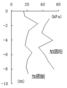 加固前后土体十字板强度沿深度变化曲线见下图: