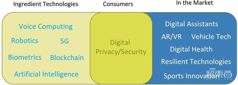 这次CES2019大会上看到的科技趋势,主要可以分为三大类,分别是基础技术、面向消费者科技和已在市场中的科技。基础技术包括语音计算、机器人技术、5G、生物识别、区块链和人工智能。面向消费者的技术包括数字隐私和安全。已在市场中的科技包括数字助理、AR/VR、汽车技术、数字医疗、高适应性技术和体能创新。以下为具体的技术趋势: