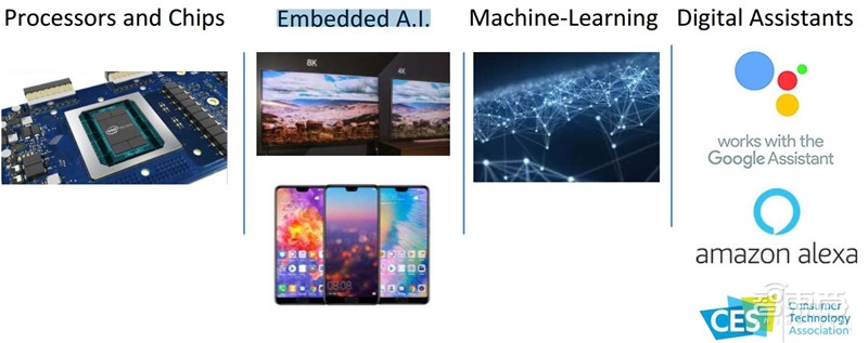 本次大会上的人工智能主要见于物联网设备,包括处理芯片、嵌入式人工智能、机器学习和数字助理。