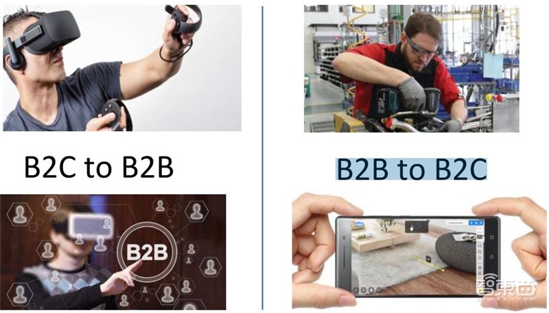 AR和VR走了不同的市场路线,VR走的是从B2B到B2C的路线,而AR是B2B to B2C的路线。